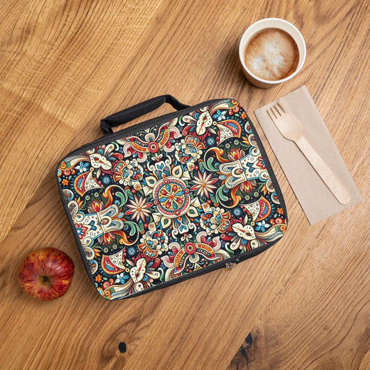 Folk Lunch Bag with Traditional Design Pattern, Food Carrier for Work and School, Insulated Tote for Daily Use, Picnic Cooler