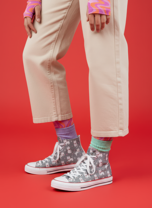 A sport-casual footwear line blending bold patterns with ergonomic design.