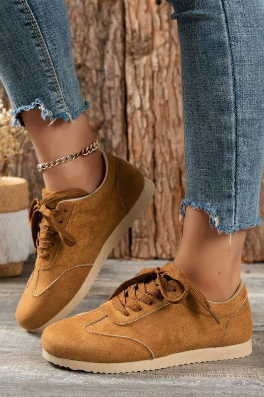 Lace-Up Suedette Flat Sneakers