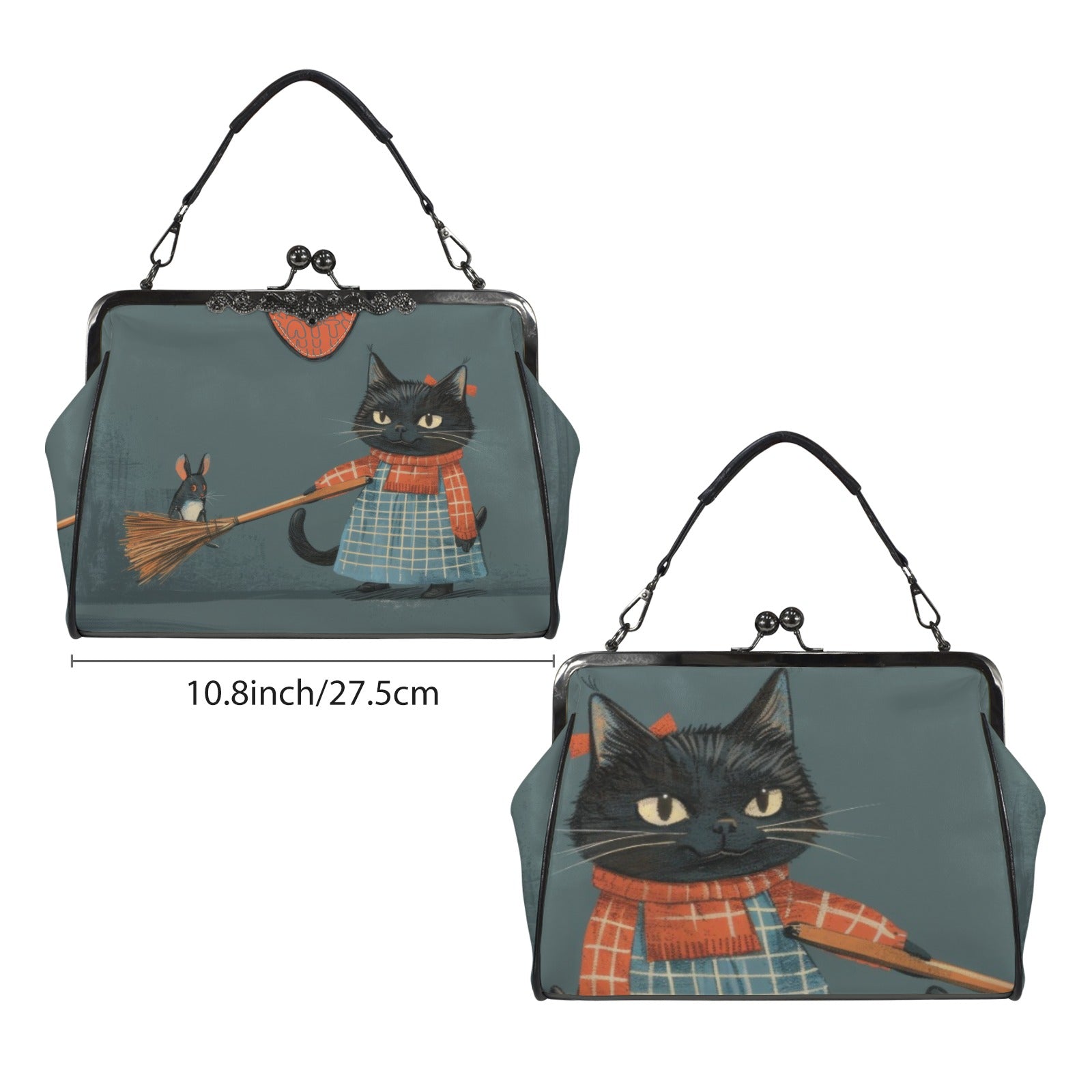 Vintage Cat & Mouse Art Handbag – Whimsical Retro-Inspired Shoulder Bag